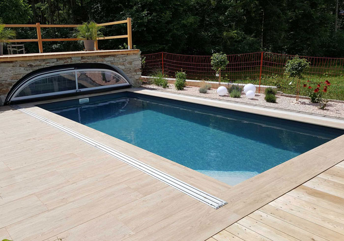 Dank ihrer robusten, verstärkten Struktur ist sie langlebig, pflegeleicht und besonders widerstandsfähig. Die große Auswahl an Farben ermöglicht eine individuelle Anpassung an jeden Pool und Gartenstil.